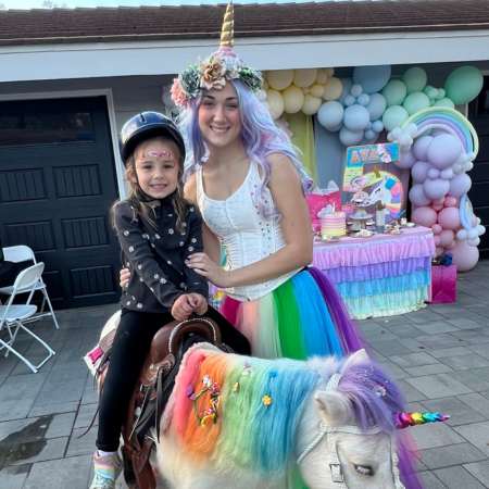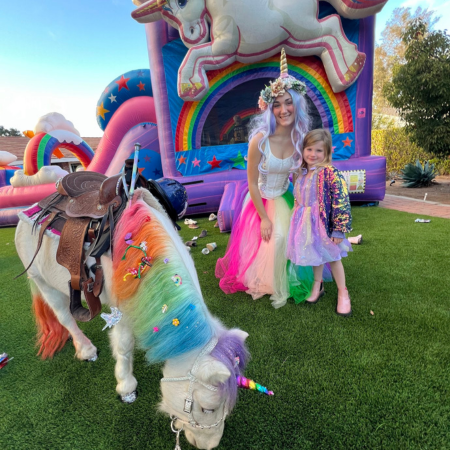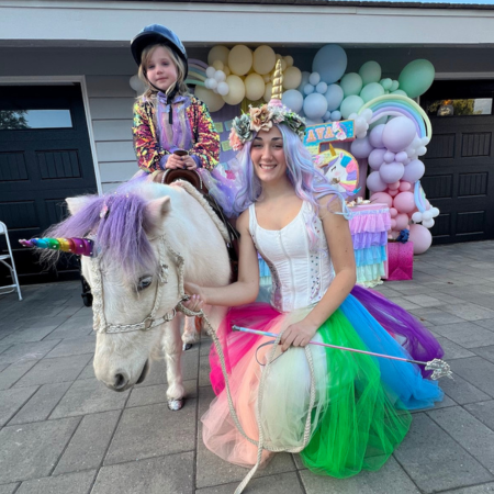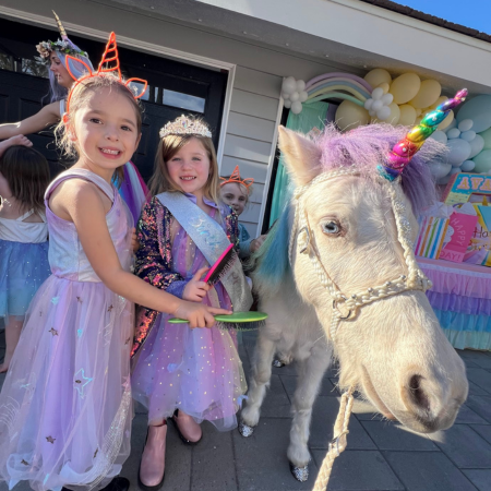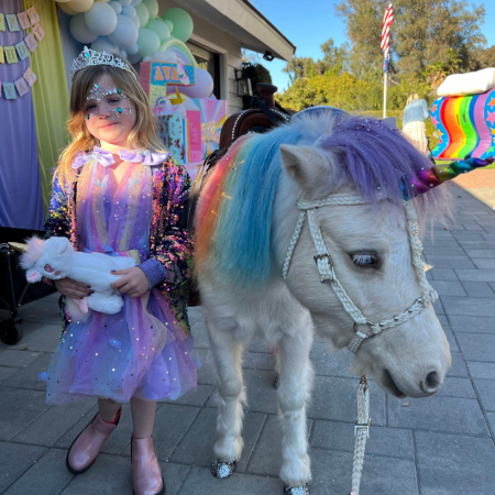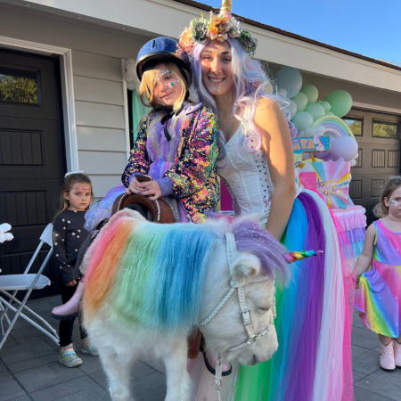 With The Posh Unicorn, your party theme becomes a dream come true. Imagine a real rainbow unicorn with big blue eyes, sparkling mane, tail & hooves and a whimsical princess that arrives on the scene for an enchanting day. We help create the perfect ambiance that captivates kids and adults alike.
